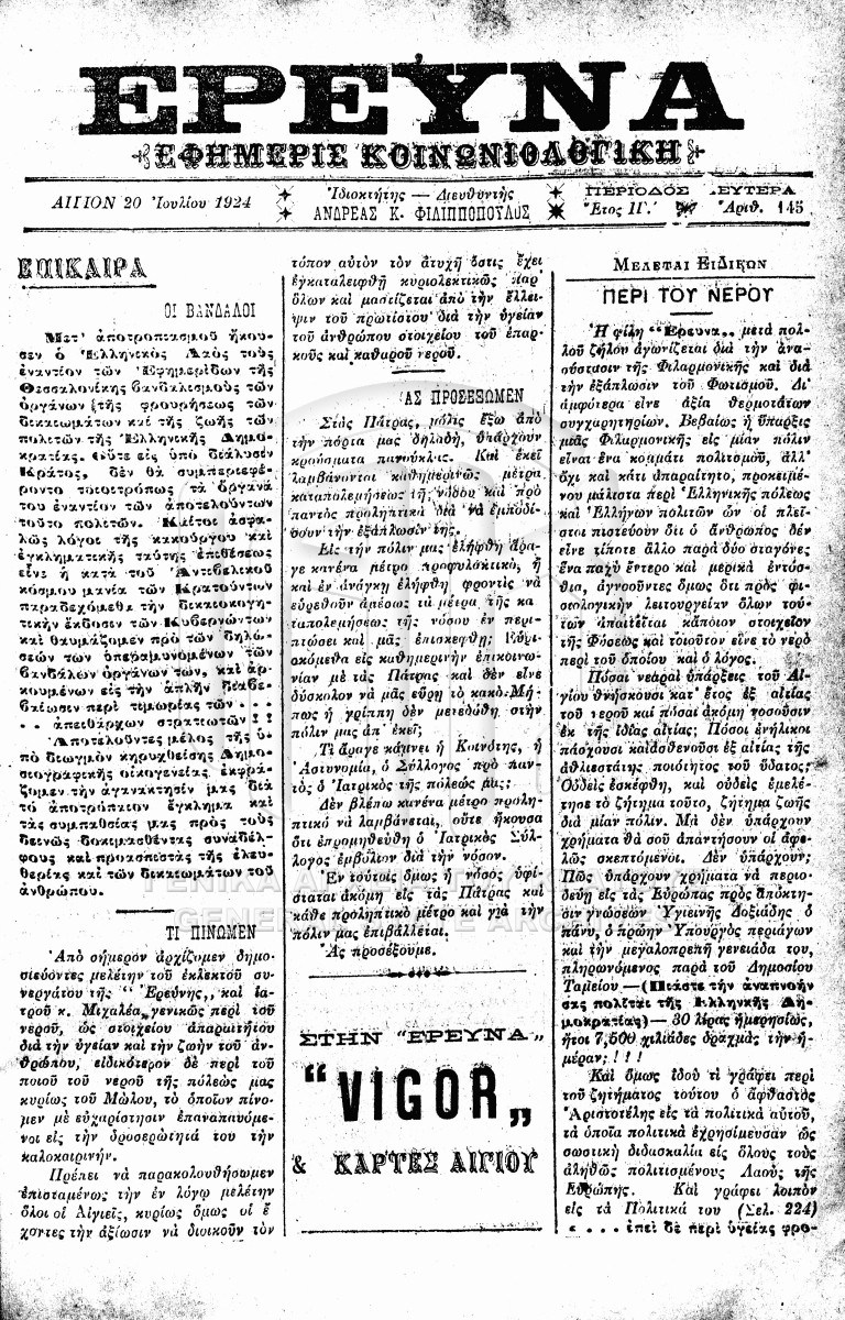 ΕΦΗΜΕΡΙΔΑ ΕΡΕΥΝΑ  [1911 - 1931]