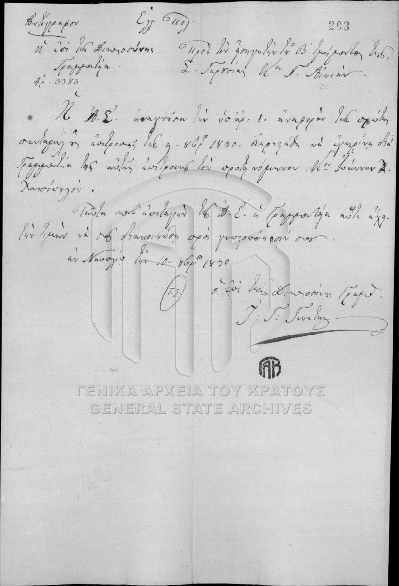 Φάκελος #082 - Μινιστέριο/Γραμματεία/Υπουργείο του Δικαίου  [1830]