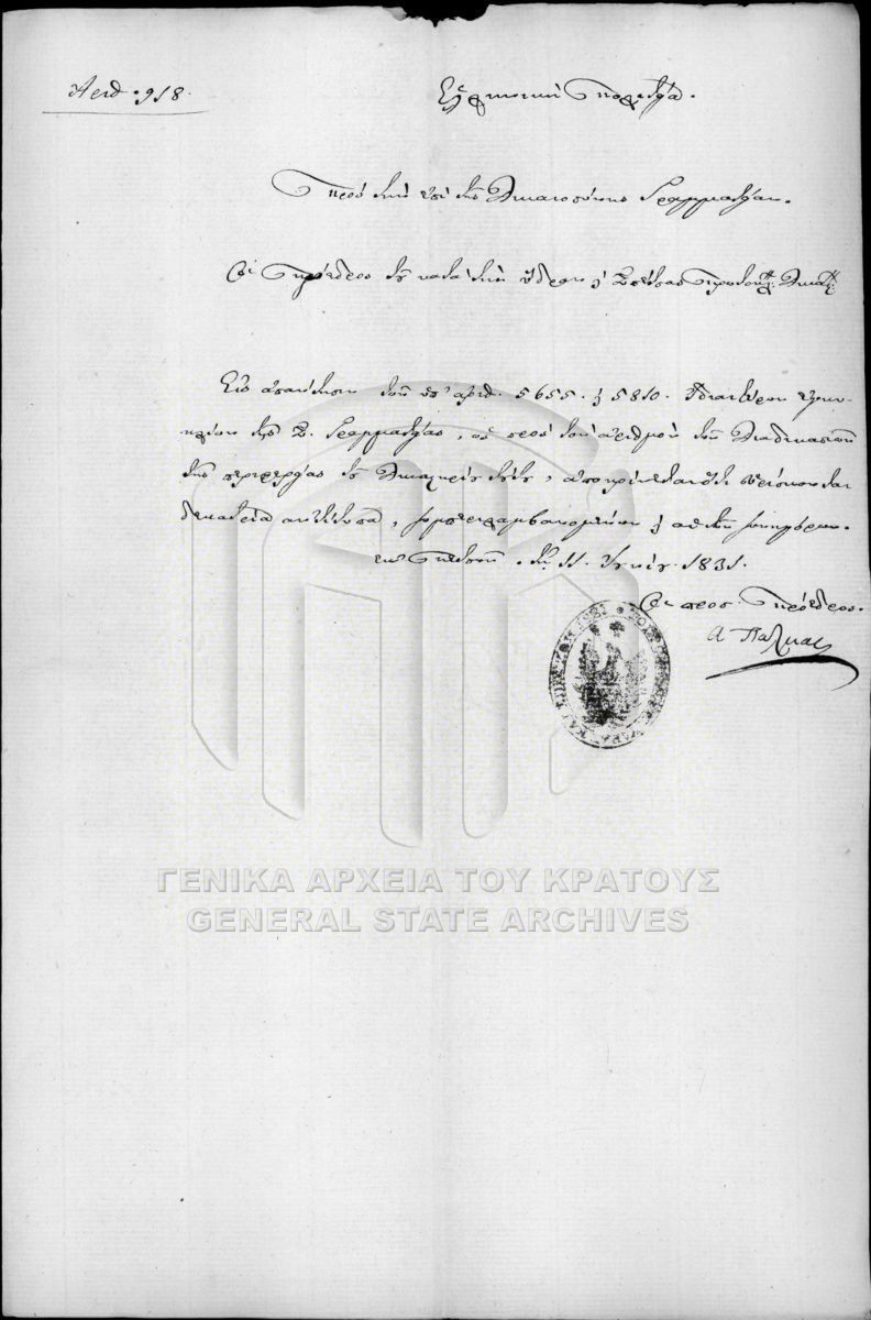 Αρχείο Μινιστέριου/Γραμματείας/Υπουργείου του Δικαίου (περιόδου Κυβερνήτη Ι. Καποδίστρια)  [1828 - 1832]