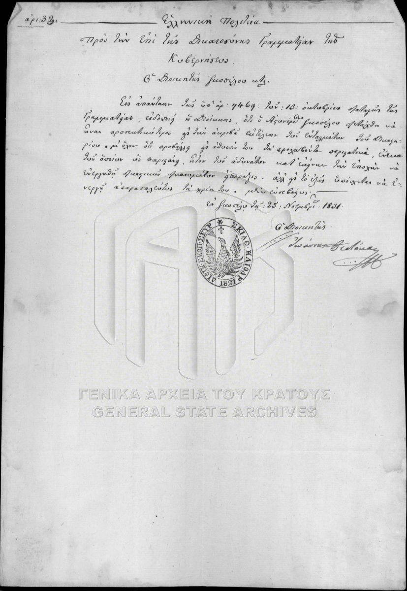 Περιέχει επιστολές, αναφορές και διάφορα έγγραφα.
