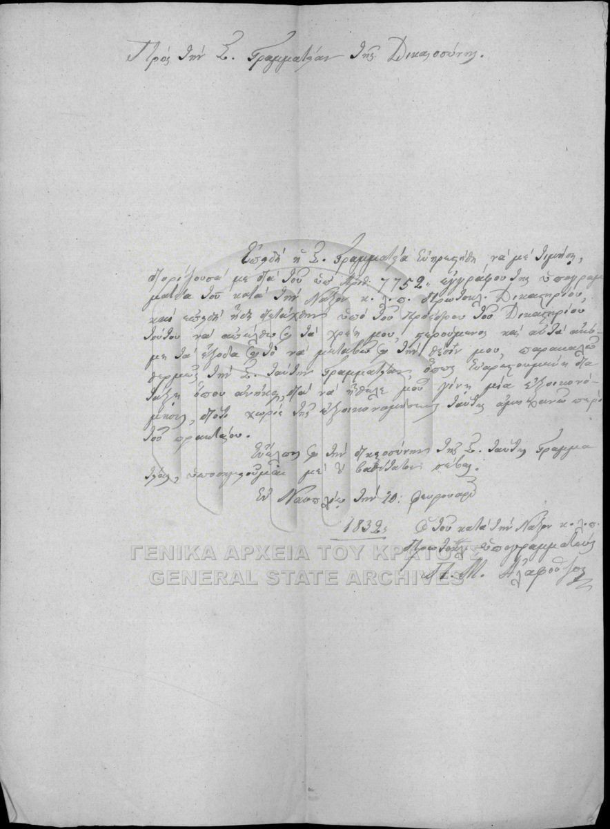 Αρχείο Μινιστέριου/Γραμματείας/Υπουργείου του Δικαίου (περιόδου Κυβερνήτη Ι. Καποδίστρια)  [1828 - 1832]