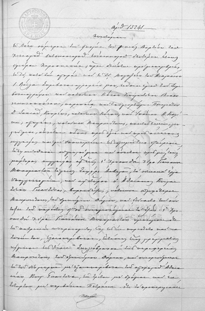 Item #15241 - KON. VLACHONIKOPOULOS NOTARIAL ARCHIVE ( IOANNIS GALLEAS NOTARIAL COLLECTION)  [20 Μαρτίου 1892]