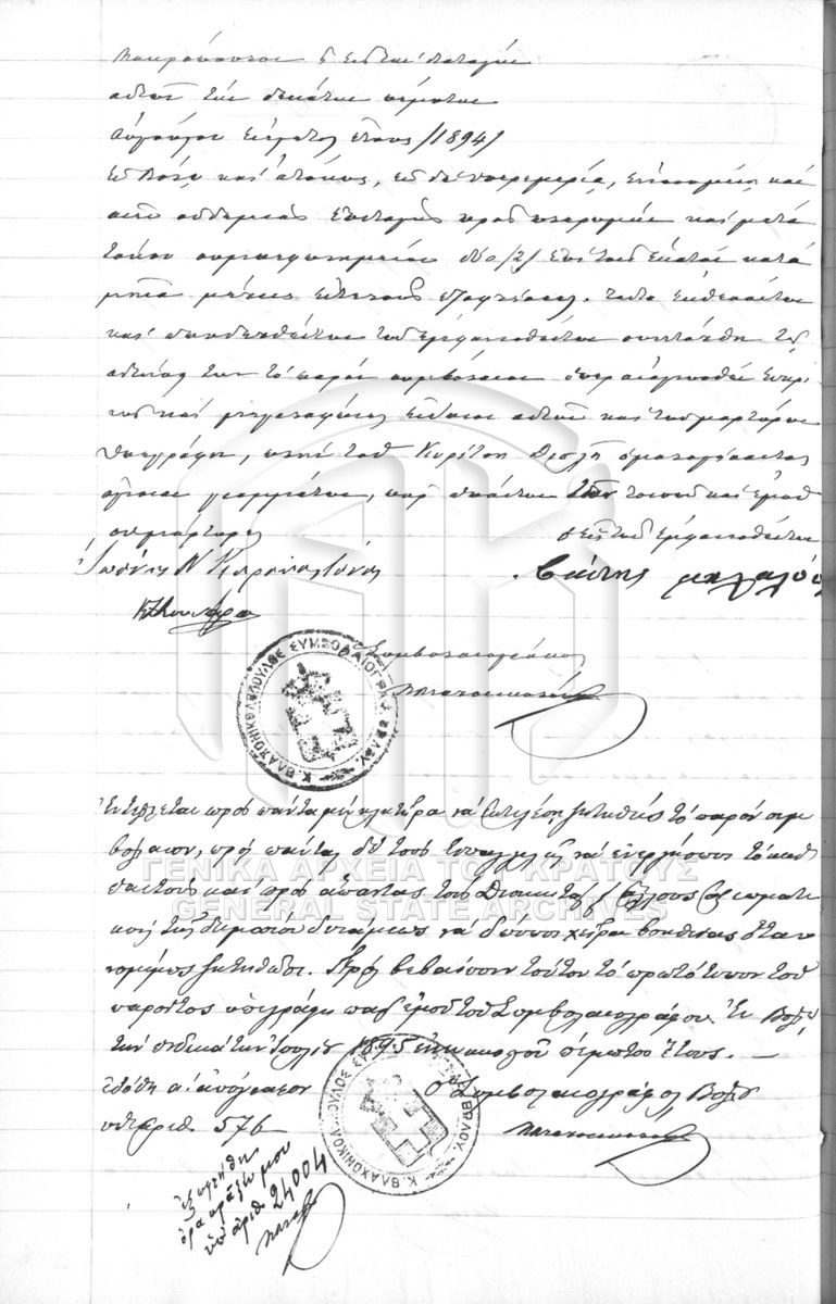 [Pièce] GRGSA-MAG_NOT026.00.F000062.IT018493 Pièce #18493 [9 Φεβρουαρίου 1894] Συμβολαιογραφική πράξη. Δανειστικό. |