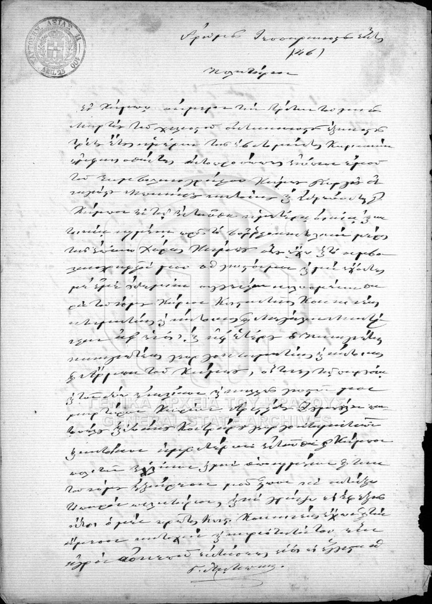 [Pièce] GRGSA-MES_NOT128.01.F000006.IT000046 Pièce #046 - ΣΥΜΒΟΛΑΙΟΓΡΑΦΙΚΟ ΑΡΧΕΙΟ ΑΒΙΑΣ [3 Μαρτίου 1863] Συμβολαιογραφική πράξη. Πωλητήριο. |