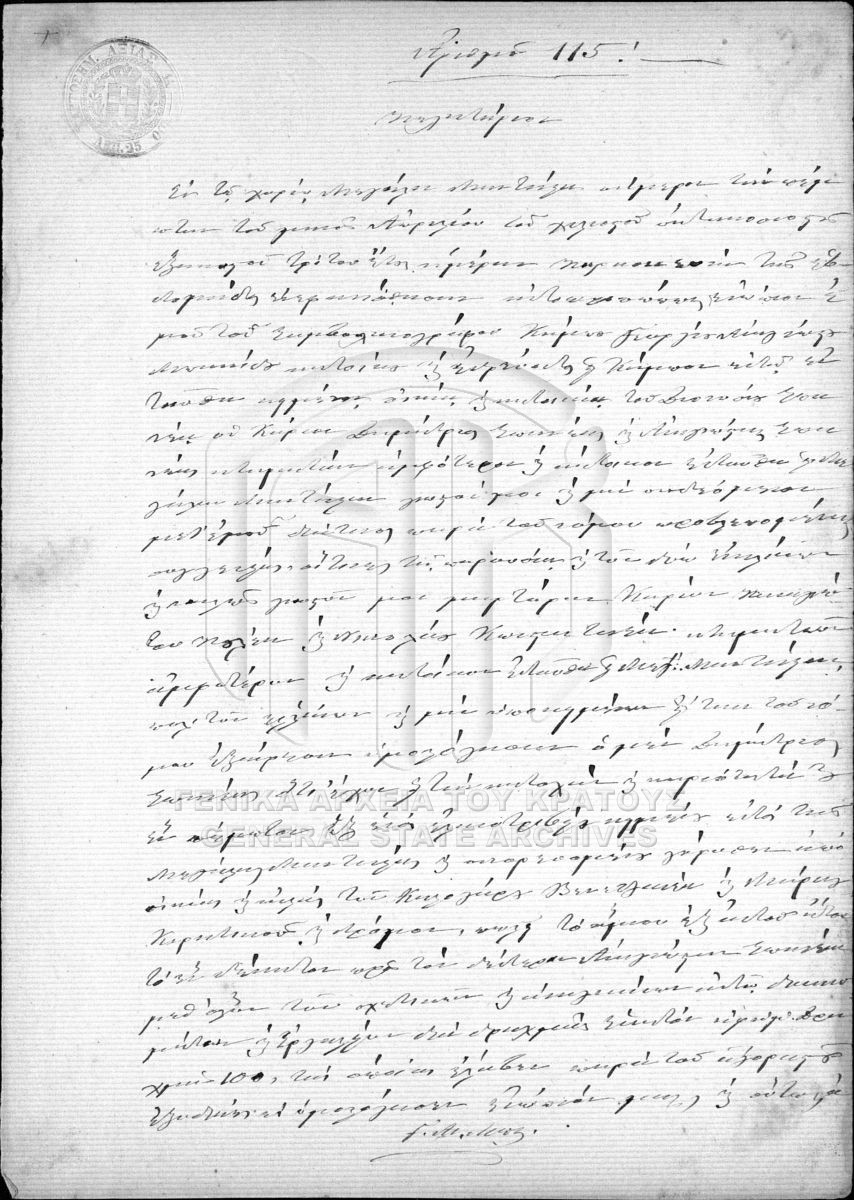[Pièce] GRGSA-MES_NOT128.01.F000006.IT000115 Pièce #115 - ΣΥΜΒΟΛΑΙΟΓΡΑΦΙΚΟ ΑΡΧΕΙΟ ΑΒΙΑΣ [5 Απριλίου 1863] Συμβολαιογραφική πράξη. Πωλητήριο. |
