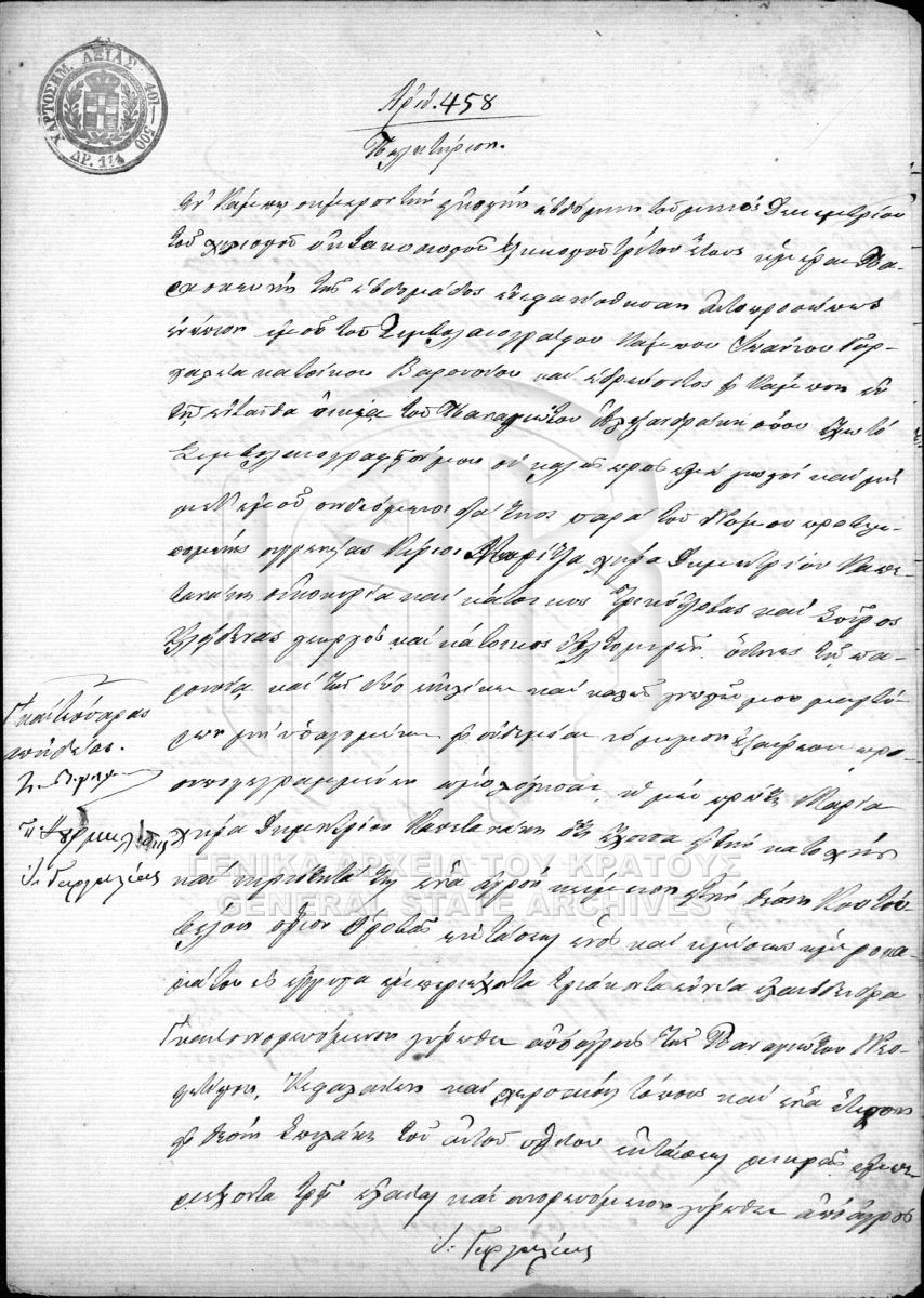 [Pièce] GRGSA-MES_NOT128.01.F000006.IT000458 Pièce #458 - ΣΥΜΒΟΛΑΙΟΓΡΑΦΙΚΟ ΑΡΧΕΙΟ ΑΒΙΑΣ [27 Δεκεμβρίου 1863] Συμβολαιογραφική πράξη. Πωλητήριο. |