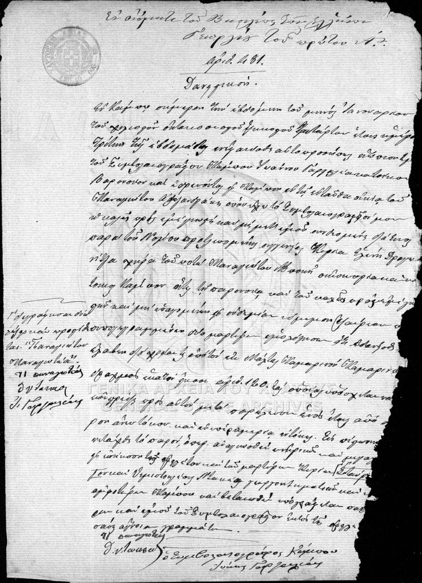 [Τεκμήριο] GRGSA-MES_NOT128.01.F000006.IT000481 Τεκμήριο #481 - ΣΥΜΒΟΛΑΙΟΓΡΑΦΙΚΟ ΑΡΧΕΙΟ ΑΒΙΑΣ [7 Ιανουαρίου 1864] Συμβολαιογραφική πράξη. Δανειστικό. |