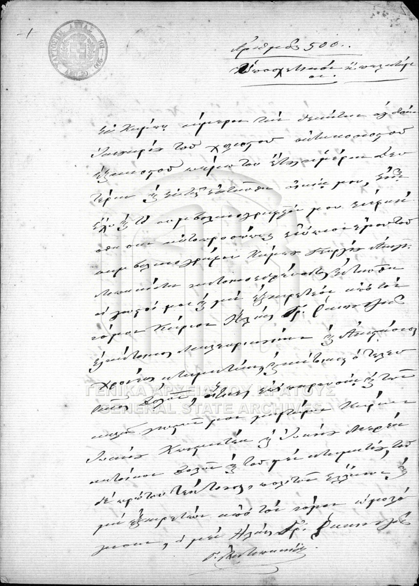 Item #500 - ΣΥΜΒΟΛΑΙΟΓΡΑΦΙΚΟ ΑΡΧΕΙΟ ΑΒΙΑΣ  [18 Ιανουαρίου 1865]
