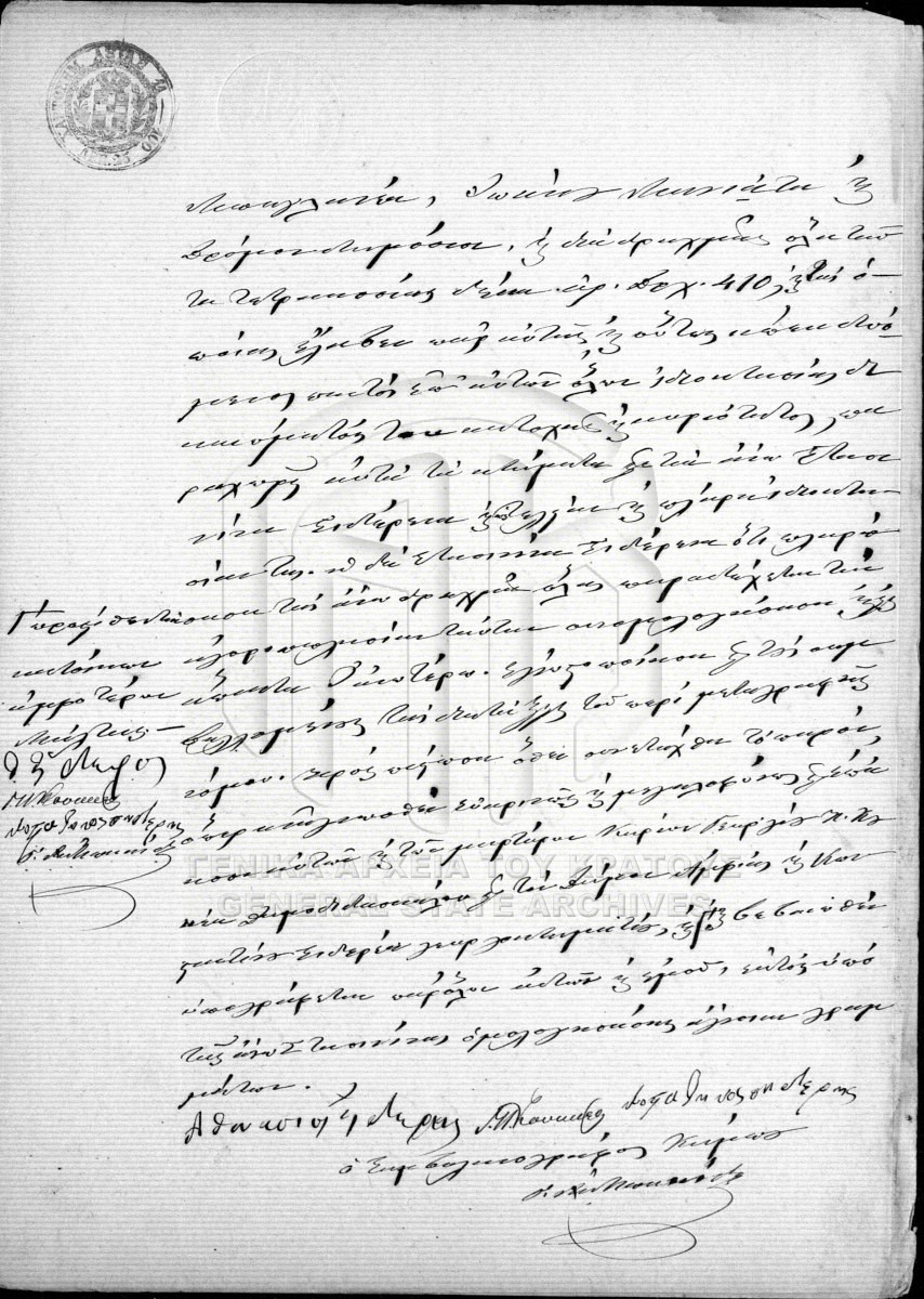 [Pièce] GRGSA-MES_NOT128.01.F000010.IT000878 Pièce #878 - ΣΥΜΒΟΛΑΙΟΓΡΑΦΙΚΟ ΑΡΧΕΙΟ ΑΒΙΑΣ [4 Ιουλίου 1865] Συμβολαιογραφική πράξη. Πωλητήριο. |