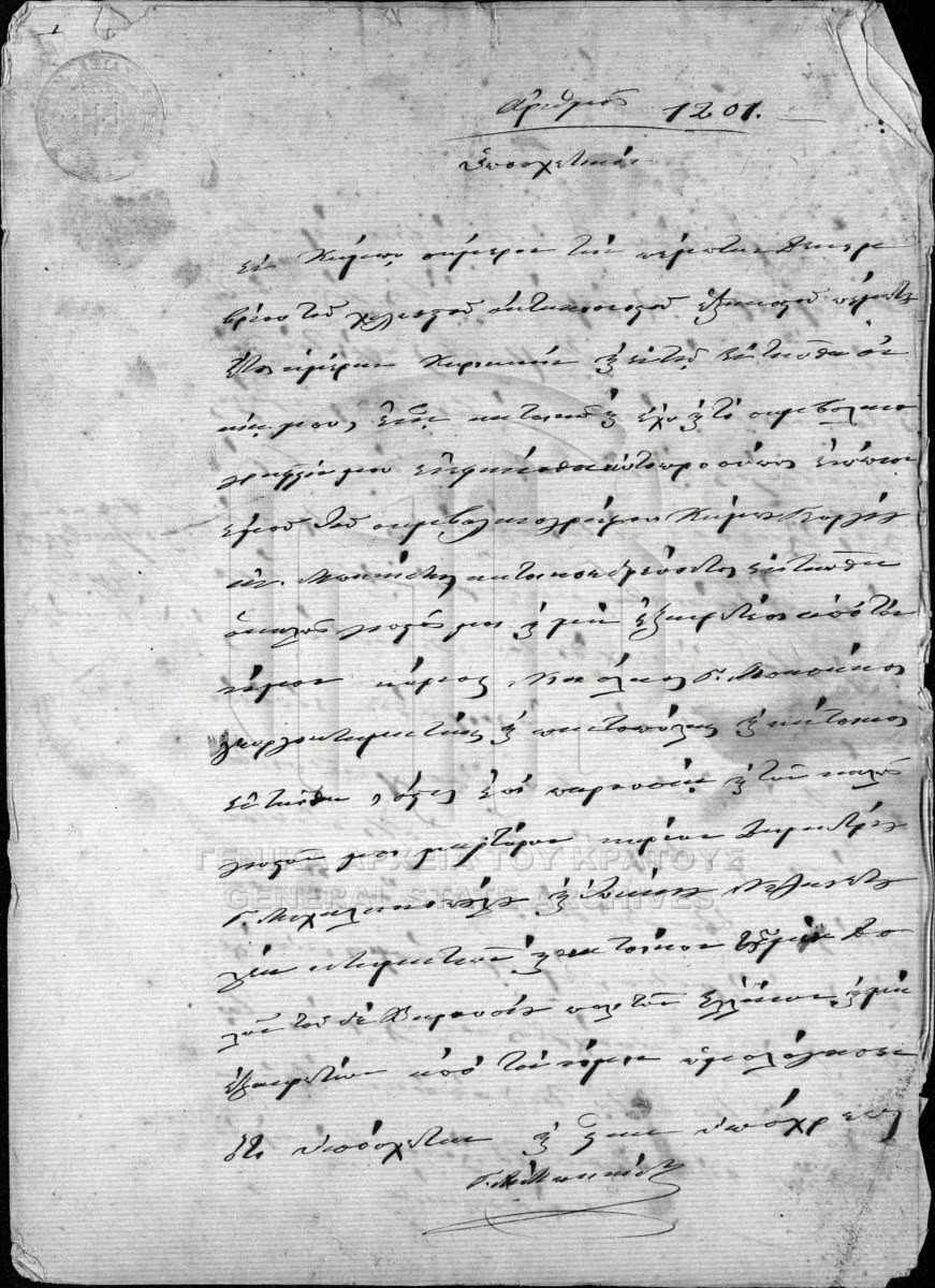 [Pièce] GRGSA-MES_NOT128.01.F000011.IT001201 Pièce #1201 - ΣΥΜΒΟΛΑΙΟΓΡΑΦΙΚΟ ΑΡΧΕΙΟ ΑΒΙΑΣ [5 Δεκεμβρίου 1865] Συμβολαιογραφική πράξη. Υποσχετικό. |