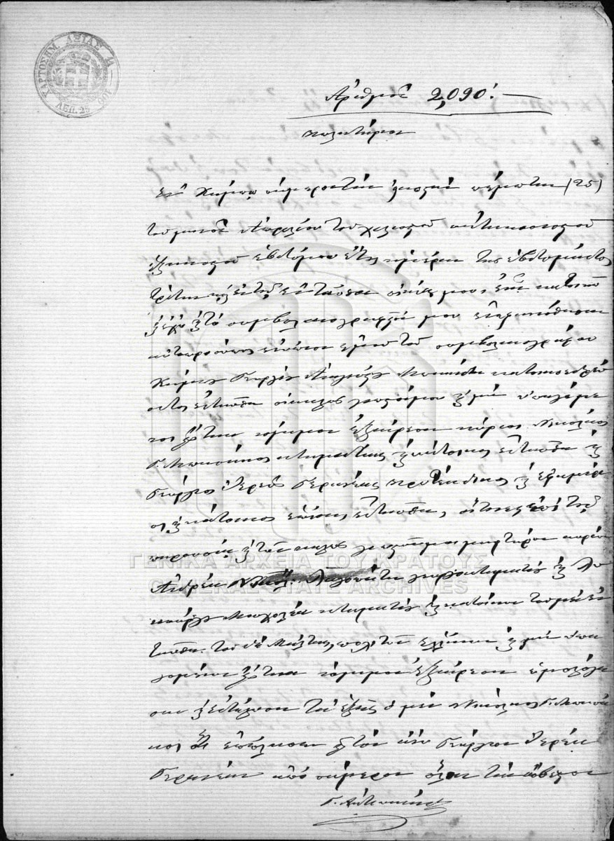 [Item] GRGSA-MES_NOT128.01.F000013.IT002090 Item #2090 - ΣΥΜΒΟΛΑΙΟΓΡΑΦΙΚΟ ΑΡΧΕΙΟ ΑΒΙΑΣ [25 Απριλίου 1867] Notarial deed. Sale agreement. |
