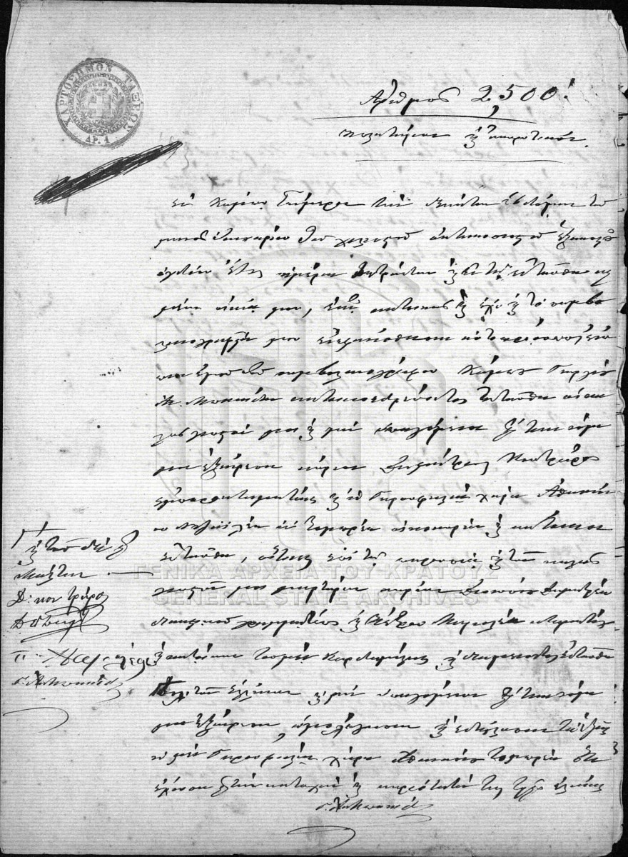 [Pièce] GRGSA-MES_NOT128.01.F000015.IT002500 Pièce #2500 - ΣΥΜΒΟΛΑΙΟΓΡΑΦΙΚΟ ΑΡΧΕΙΟ ΑΒΙΑΣ [17 Ιανουαρίου 1868] Συμβολαιογραφική πράξη. Πωλητήριο και ακυρωτικό. |