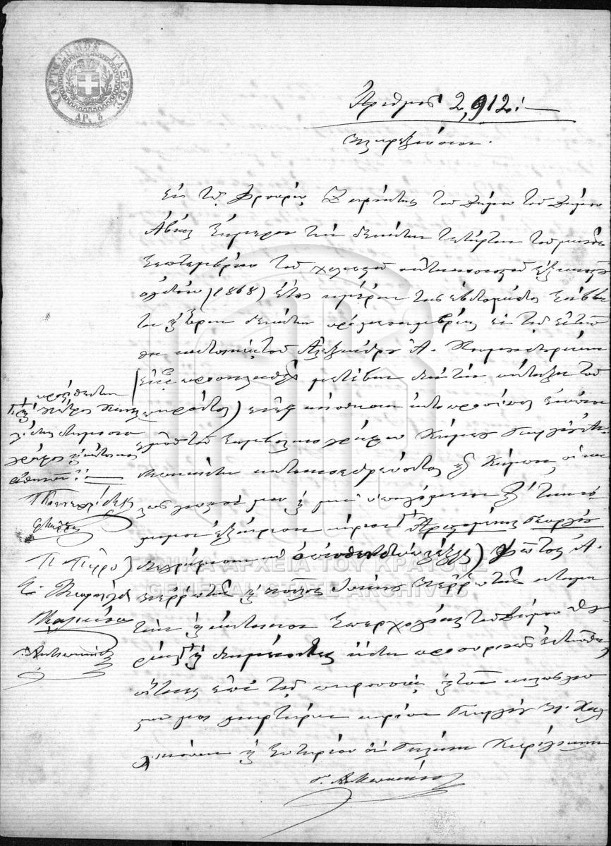 [Pièce] GRGSA-MES_NOT128.01.F000016.IT002912 Pièce #2912 - ΣΥΜΒΟΛΑΙΟΓΡΑΦΙΚΟ ΑΡΧΕΙΟ ΑΒΙΑΣ [14 Σεπτεμβρίου 1868] Συμβολαιογραφική πράξη. Πληρεξούσιο. |