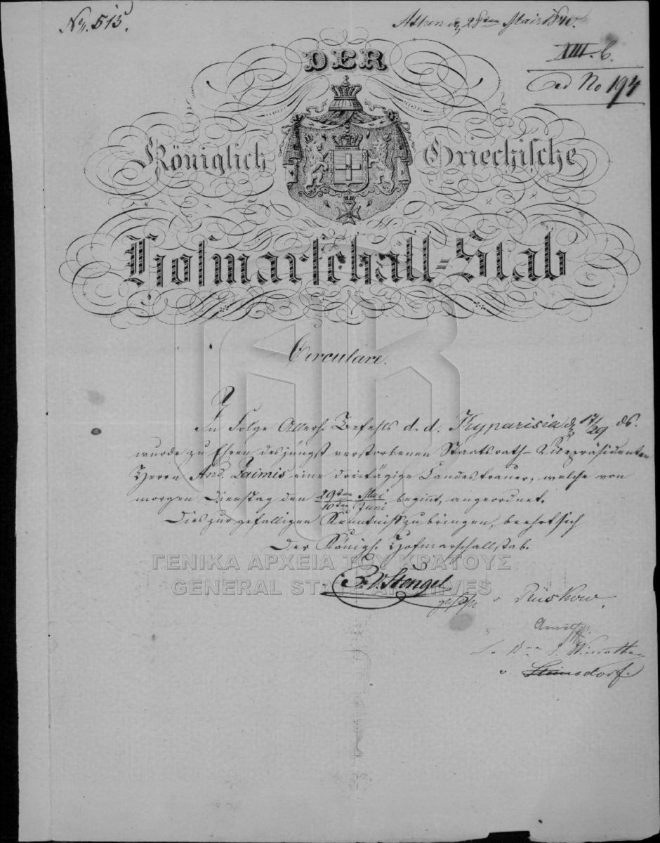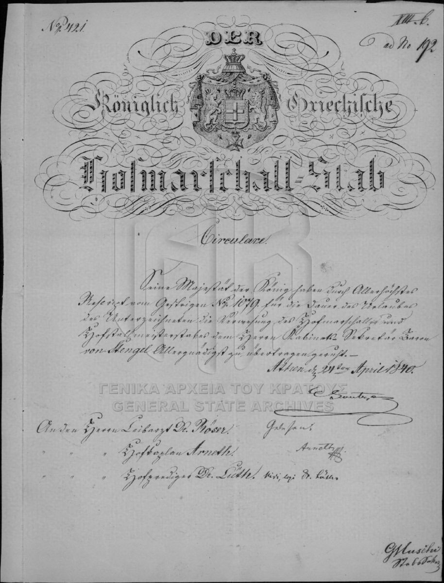 Ανάκτορα: Αυλαρχείο – Ανακτορικό Ταμείο. C.1.d. Εγκύκλιοι. (τόμ. Ι - α/α εγγράφων 1 - 194).