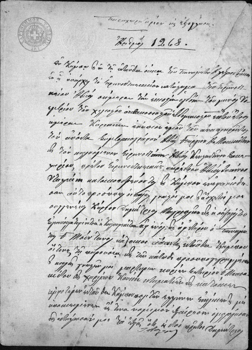 [Item] GRGSA-MES_NOT128.01.F000033.IT001268 Item #1268 - ΣΥΜΒΟΛΑΙΟΓΡΑΦΙΚΟ ΑΡΧΕΙΟ ΑΒΙΑΣ [28 Νοεμβρίου 1876] Συμβολαιογραφική πράξη. Παραχωρητήριο και εξόφληση. |