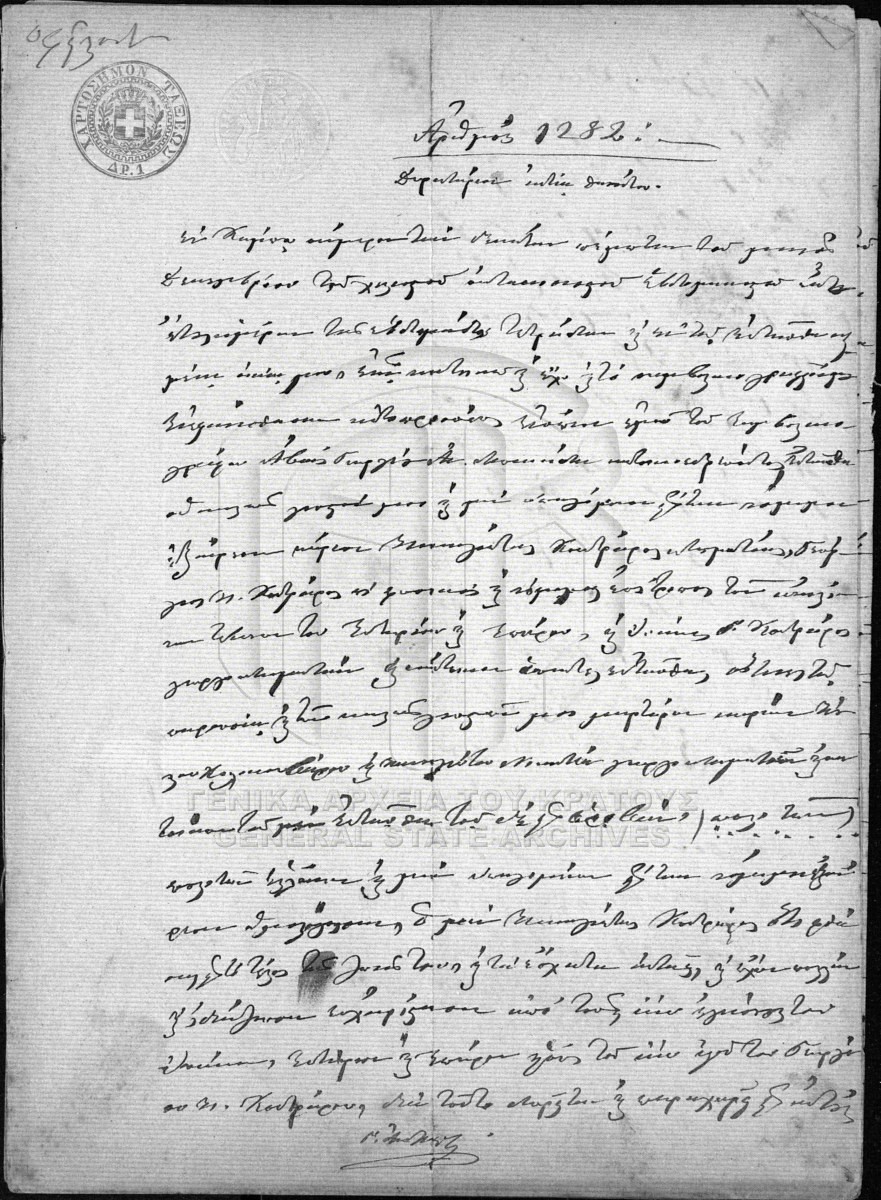 [Item] GRGSA-MES_NOT128.01.F000033.IT001282 Item #1282 - ΣΥΜΒΟΛΑΙΟΓΡΑΦΙΚΟ ΑΡΧΕΙΟ ΑΒΙΑΣ [15 Δεκεμβρίου 1876] Notarial deed. Donatio mortis causa deed. |