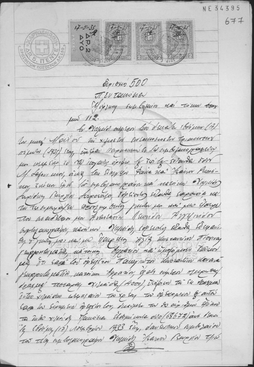 [Item] GRGSA-EUB_NOT001.10.01.F000001.SF0002.IT000500 Item #500 [17 Μαΐου 1935] Συμβολαιογραφική πράξη. Εξόφληση συμβολαίου και τόκων. |