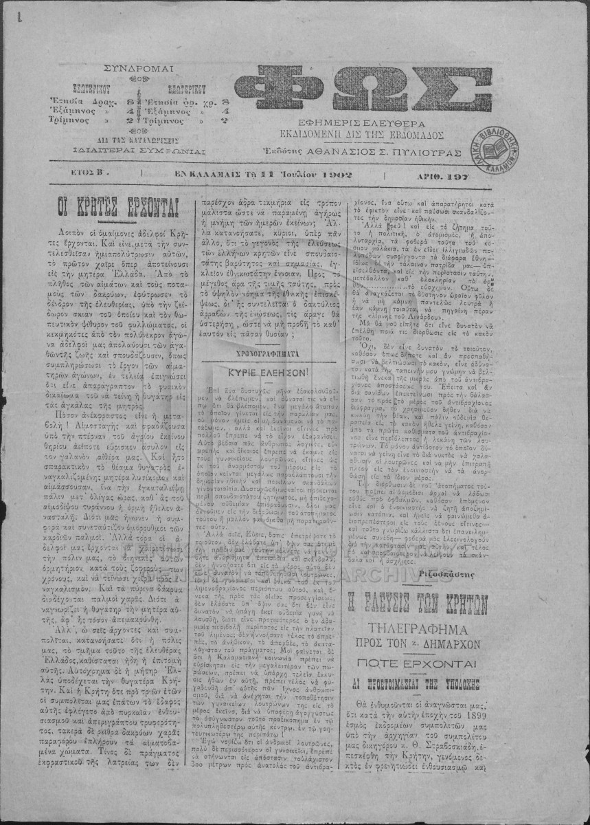 [Αρχείο] GRGSA-MES_PRS060 ΑΡΧΕΙΟ ΕΦΗΜΕΡΙΔΑΣ ΚΑΛΑΜΑΤΑΣ "ΦΩΣ" [1900-1907] "ΕΦΗΜΕΡΙΣ ΕΛΕΥΘΕΡΑ ΕΚΔΙΔΟΜΕΝΗ ΔΙΣ ΤΗΣ ΕΒΔΟΜΑΔΟΣ" |