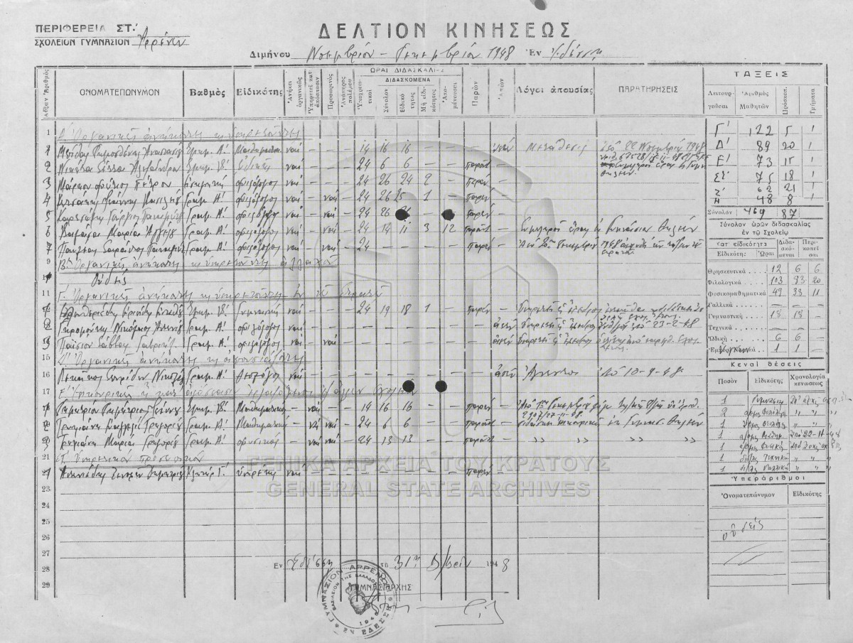 Δελτία κίνησης κ.στατιστικής.Αναφορές Διευθυντών.Ωρολ.Προγράμ.