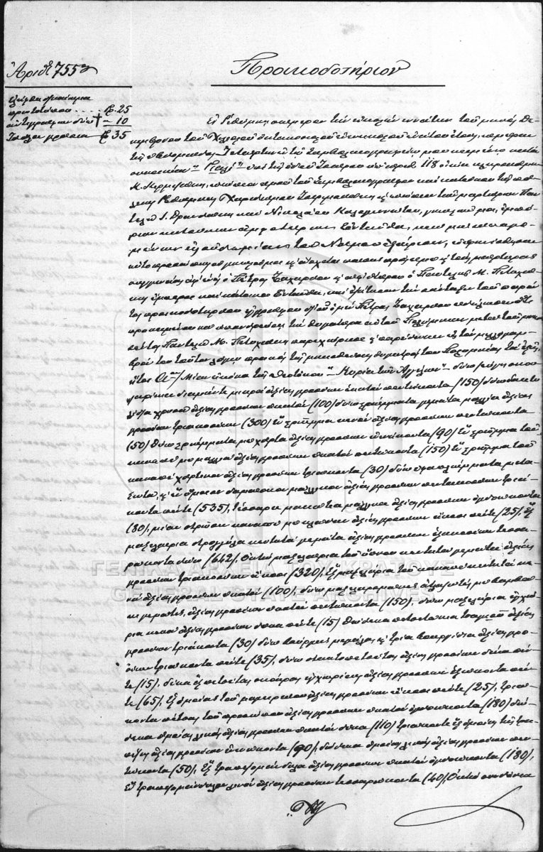 [Pièce] GRGSA-RET_NOT002.01.F000014.IT000755 Pièce #755 [29 Δεκεμβρίου 1899] Συμβολαιογραφική πράξη. Προικοδοτήριο. |