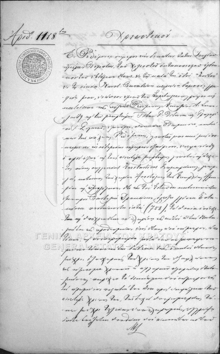 [Item] GRGSA-RET_NOT010.01.F000003.IT001118 Item #1118 [16 Ιουλίου 1887] Notarial deed. Debit note. |