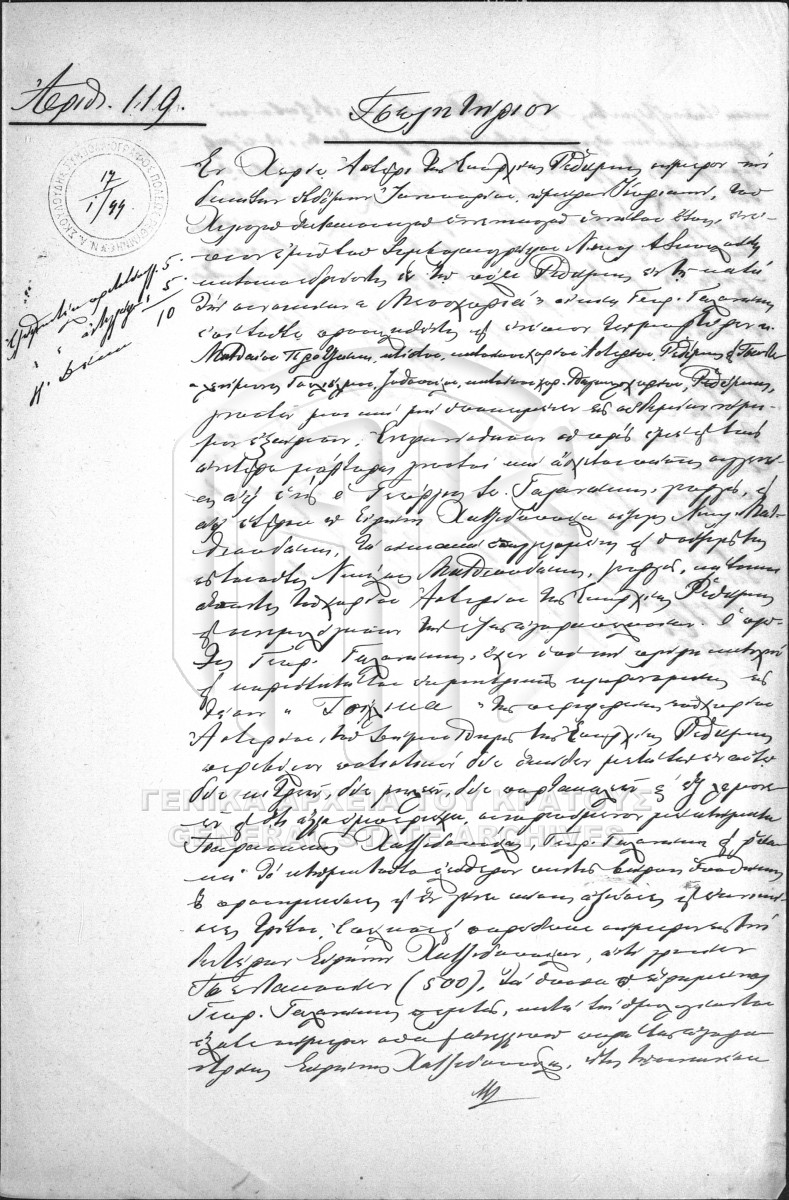 [Item] GRGSA-RET_NOT010.01.F000016.IT000119 Item #119 [17 Ιανουαρίου 1899] Notarial deed. Sale agreement. |