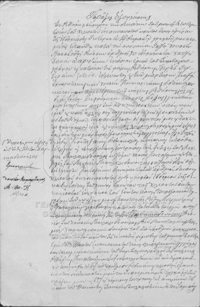 [Pièce] GRGSA-RET_NOT012.01.F000003.IT011221 Pièce #11221 [20 Νοεμβρίου 1899] Συμβολαιογραφική πράξη. Πωλητήριο. |