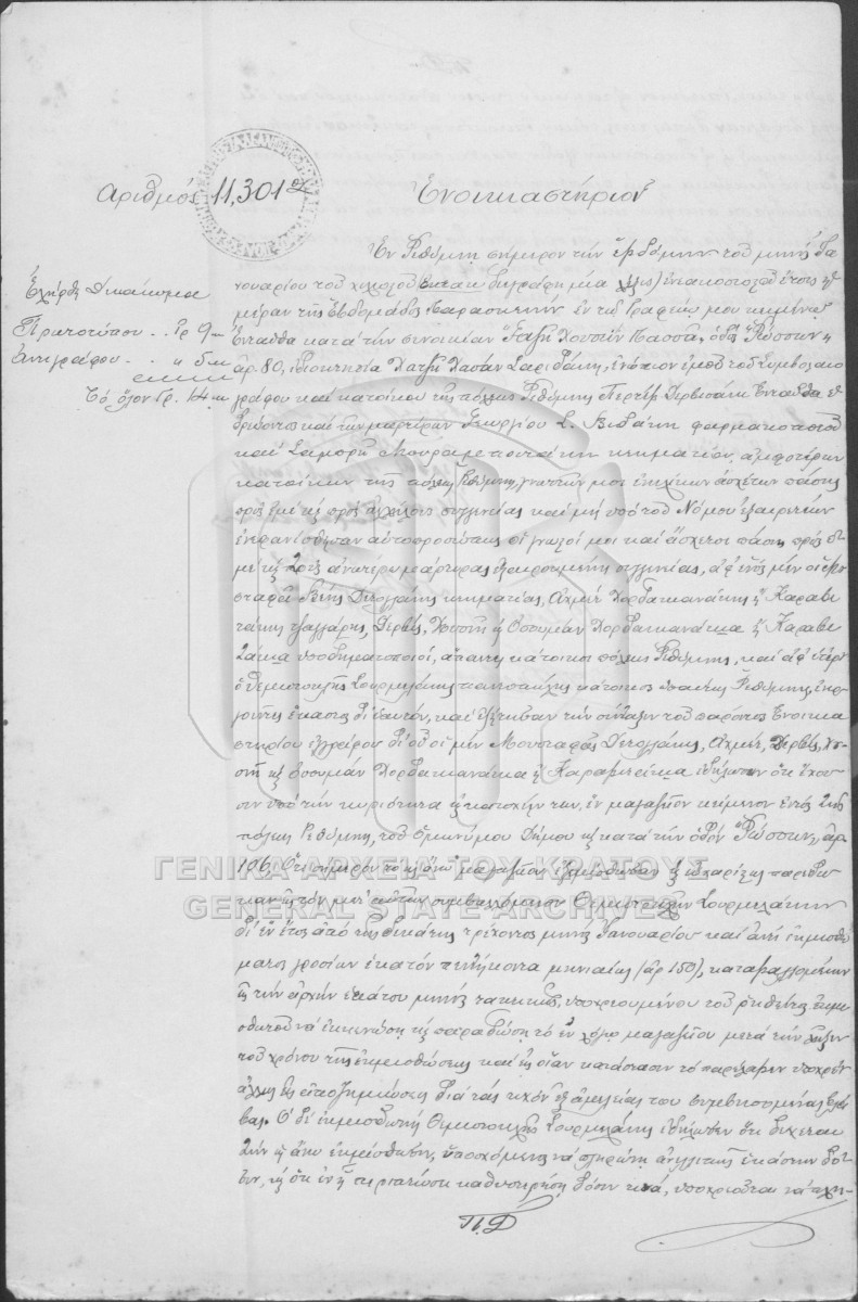 [Pièce] GRGSA-RET_NOT012.01.F000003.IT011301 Pièce #11301 [7 Ιανουαρίου 1900] Συμβολαιογραφική πράξη. Ενοικιαστήριο. |