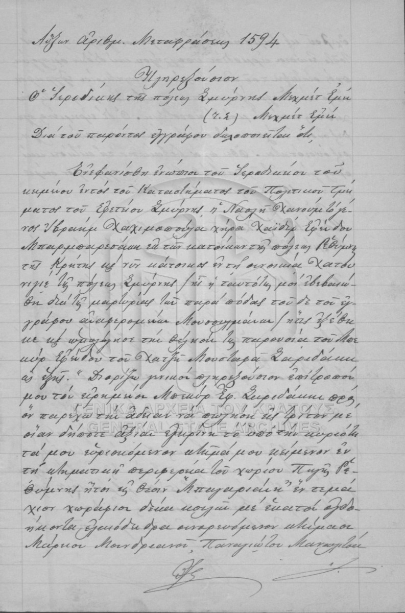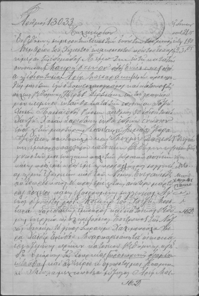 [Τεκμήριο] GRGSA-RET_NOT012.01.F000008.IT013033 Τεκμήριο #13033 [29 Νοεμβρίου 1901] Συμβολαιογραφική πράξη. Πωλητήριο. |