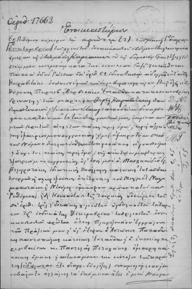 [Item] GRGSA-RET_NOT012.01.F000021.IT017662 Item #17662 [1 Οκτωβρίου 1907] Notarial deed. Lease. |