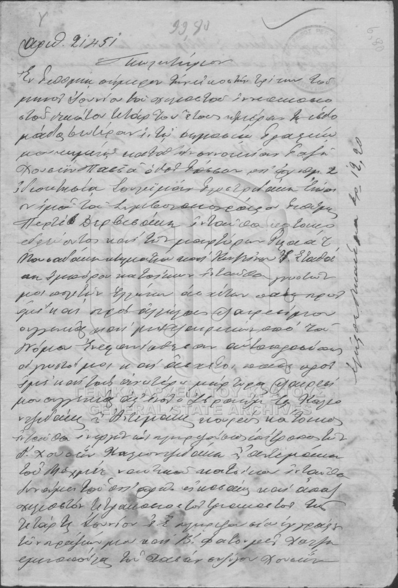 [Pièce] GRGSA-RET_NOT012.01.F000030.IT021451 Pièce #21451 - ΑΡΧΕΙΟ ΣΥΜΒΟΛΑΙΟΓΡΑΦΟΥ ΡΕΘΥΜΝOY (ΑΛΗ) ΠΕΡΤΕΒ ΔΕΡΒΙΣΑΚΗ ή ΔΕΡΒΙΣΖΑΔΕ [23 Ιουνίου 1914] Συμβολαιογραφική πράξη. Πωλητήριο. |
