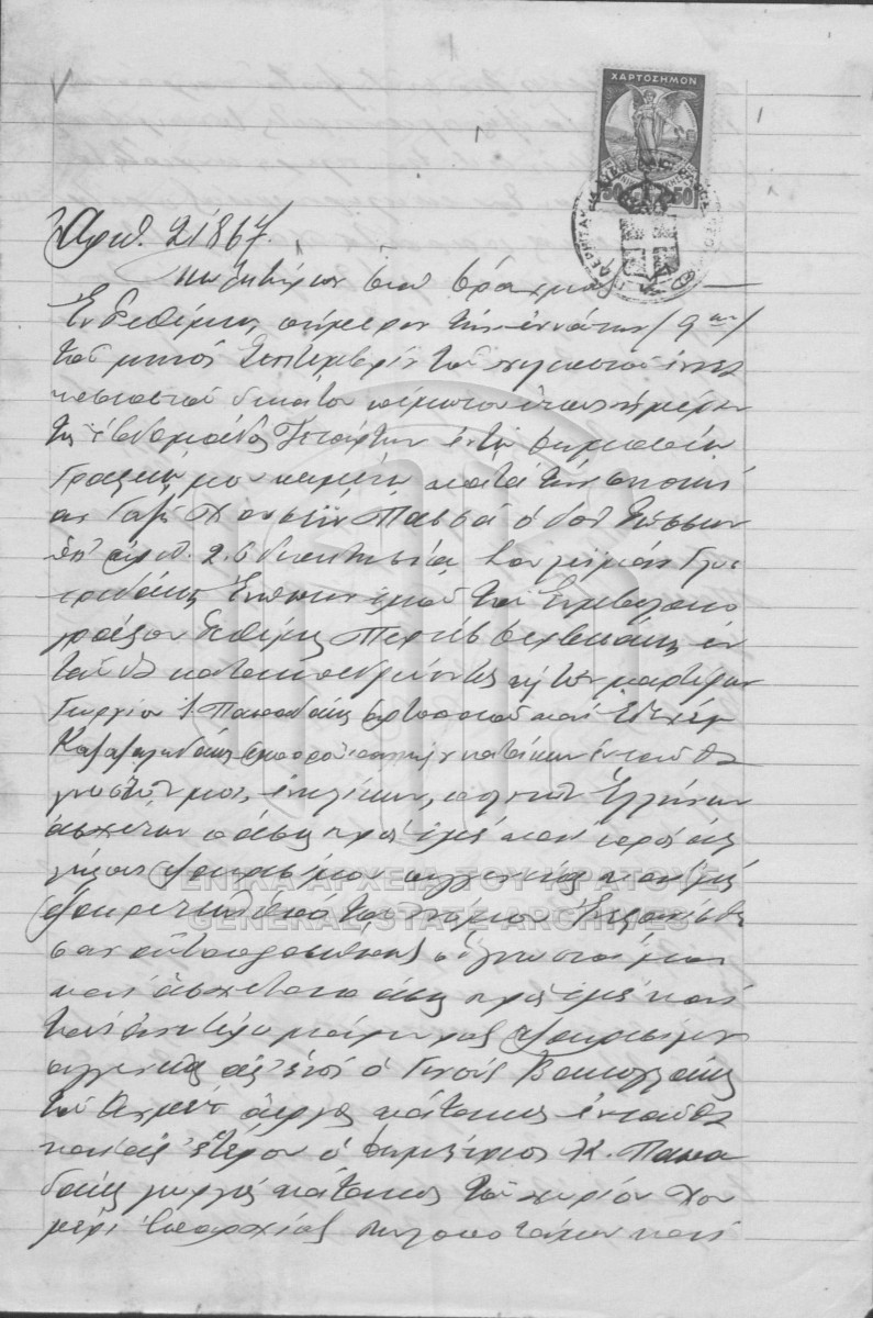 [Pièce] GRGSA-RET_NOT012.01.F000031.IT021867 Pièce #21867 [9 Σεπτεμβρίου 1915] Συμβολαιογραφική πράξη. Πωλητήριο. |