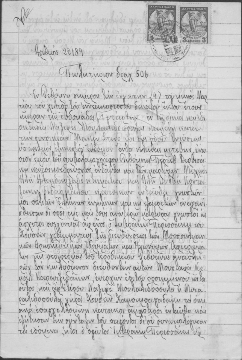 [Item] GRGSA-RET_NOT012.01.F000032.IT022189 Item #22189 [9 Μαρτίου 1916] Notarial deed. Sale agreement. |