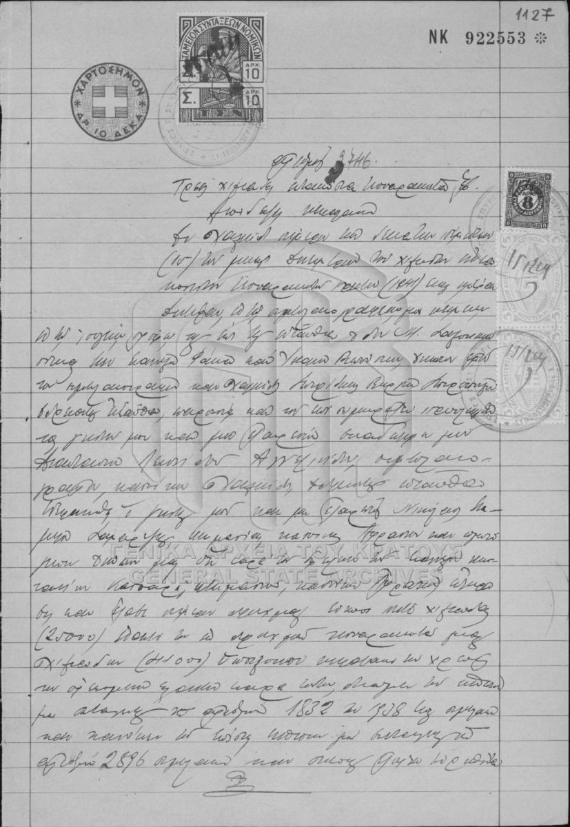 [Item] GRGSA-EUB_NOT001.10.01.F000008.SF0001.IT003746 Item #3746 [15 Δεκεμβρίου 1941] Συμβολαιογραφική πράξη. Απόδειξη κεφαλαίου. |