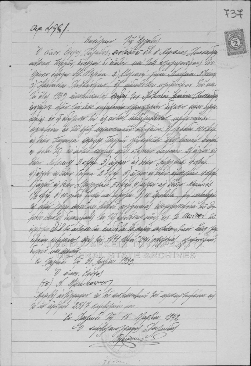 [Item] GRGSA-EUB_NOT001.10.01.F000008.SF0002.IT003883 Item #3883 [16 Μαρτίου 1942] Notarial deed. Real estate transaction of sale. |