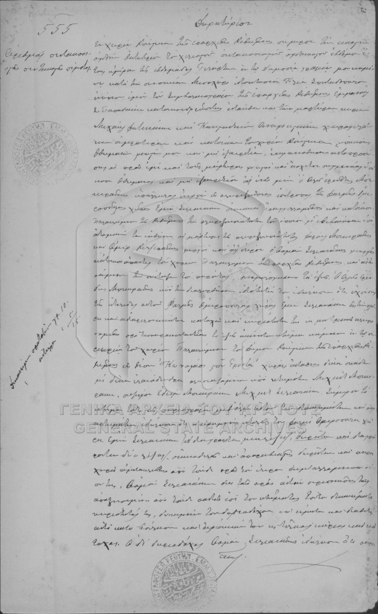 [Pièce] GRGSA-RET_NOT013.01.F000002.IT000555 Pièce #555 [28 Οκτωβρίου 1887] Συμβολαιογραφική πράξη. Δωρητήριο. |