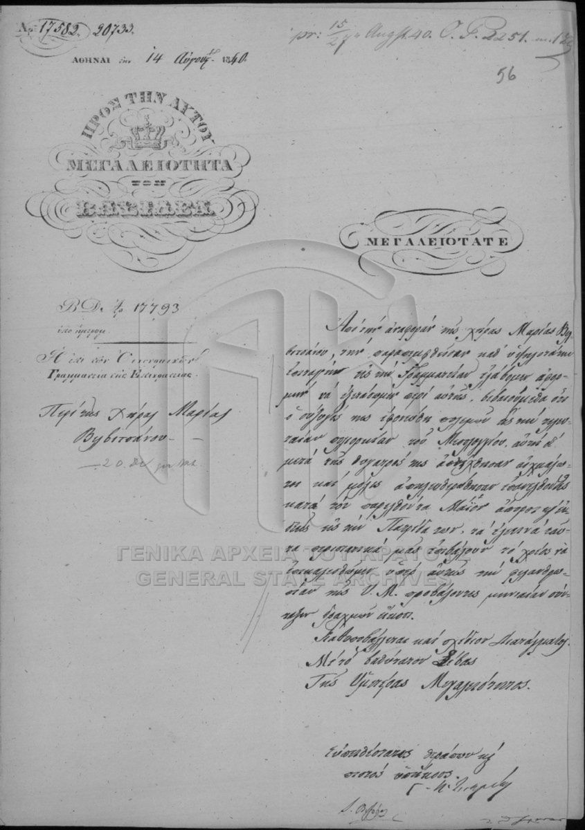 Υποφάκελοι πέντε: 1840, 1841, 1842, 1843, 1844. Αναφορές, αιτήσεις, συνοδευτικά έγγραφα, σχέδια, αντίγραφα και αποσπάσματα βασιλικών δια...