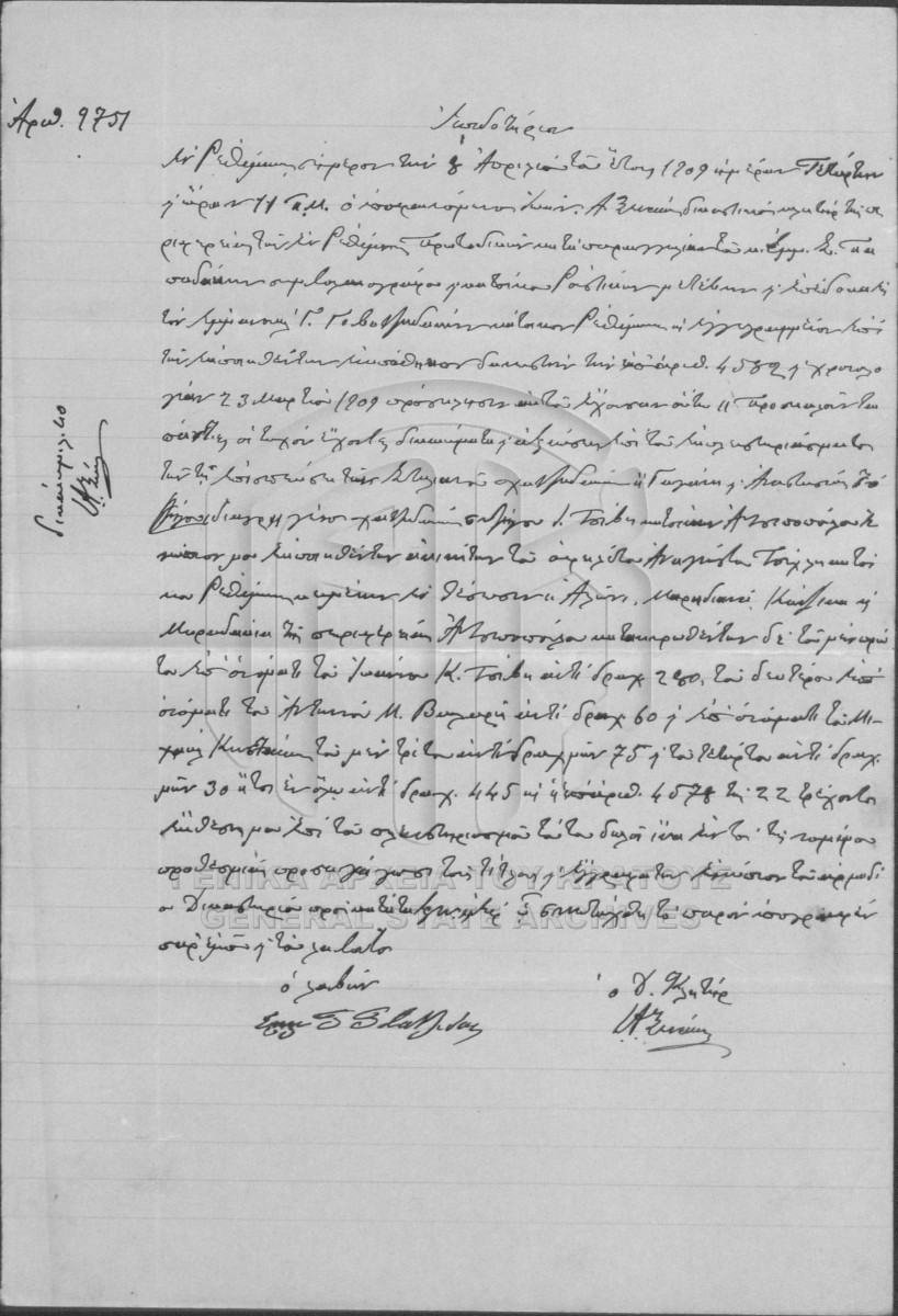 [Pièce] GRGSA-RET_NOT013.01.F000030.IT004578 Pièce #4578 [22 Μαρτίου 1909] Συμβολαιογραφική πράξη. Έκθεση πλειστηριασμού. |