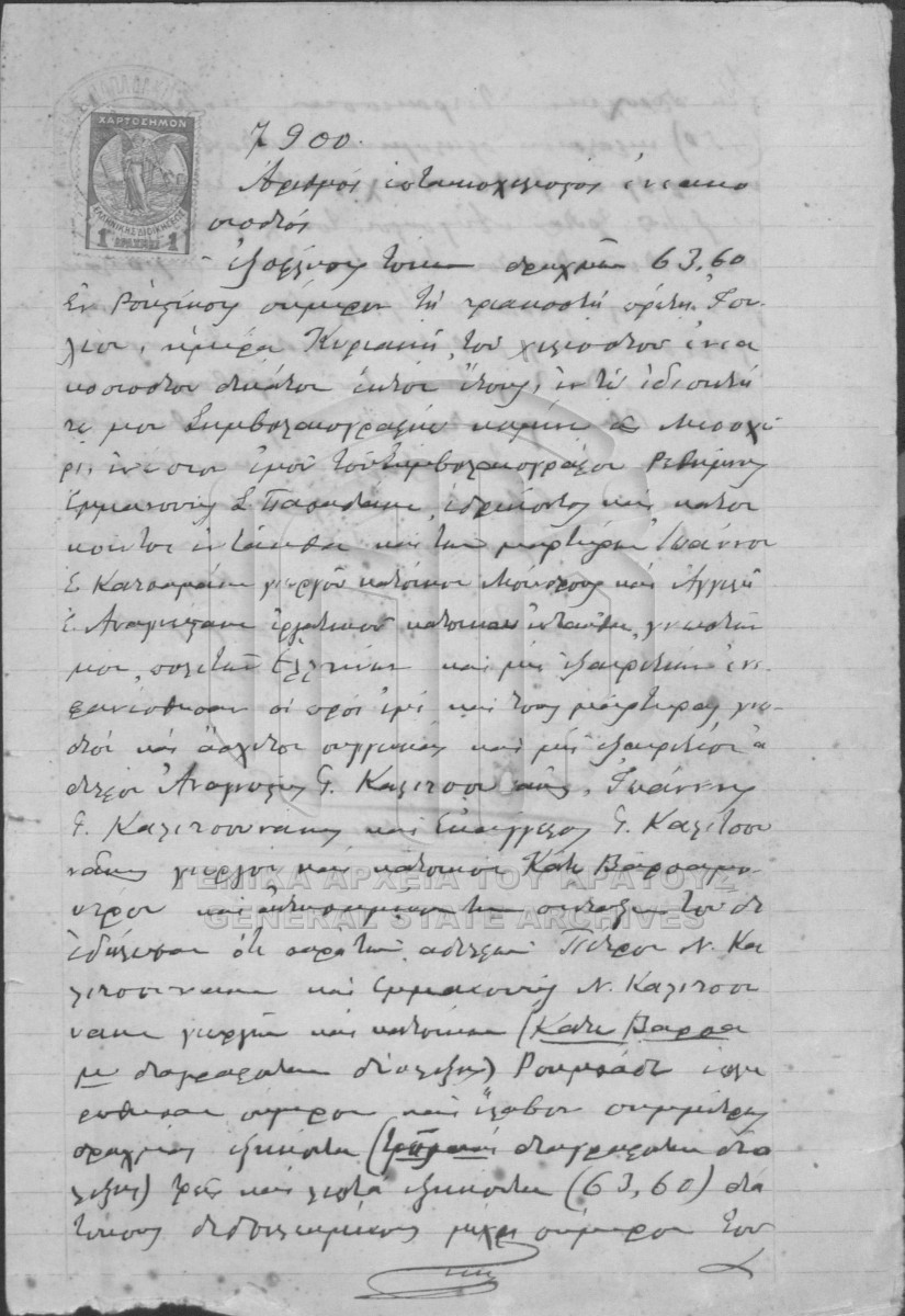 [Pièce] GRGSA-RET_NOT013.01.F000040.IT007900 Pièce #7900 [31 Ιουλίου 1916] Συμβολαιογραφική πράξη. Εξόφληση τόκου. |
