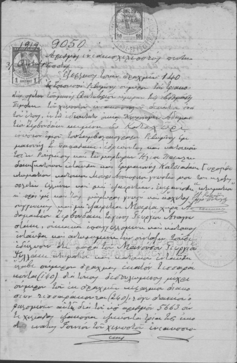 [Τεκμήριο] GRGSA-RET_NOT013.01.F000043.IT009050 Τεκμήριο #9050 [31 Οκτωβρίου 1919] Συμβολαιογραφική πράξη. Εξόφληση τόκων. |