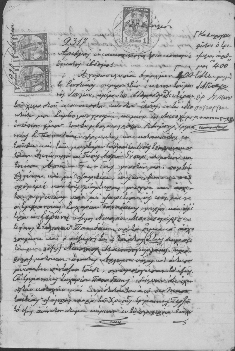 [Pièce] GRGSA-RET_NOT013.01.F000044.IT009317 Pièce #9317 [6 Ιουλίου 1920] Συμβολαιογραφική πράξη. Αγοραπωλησία. |