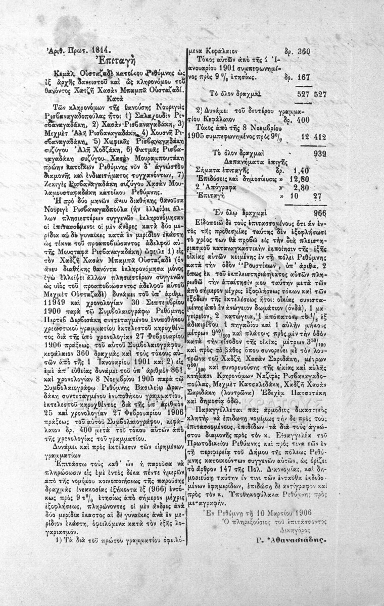 Pièce #1595  [15 Οκτωβρίου 1906]
