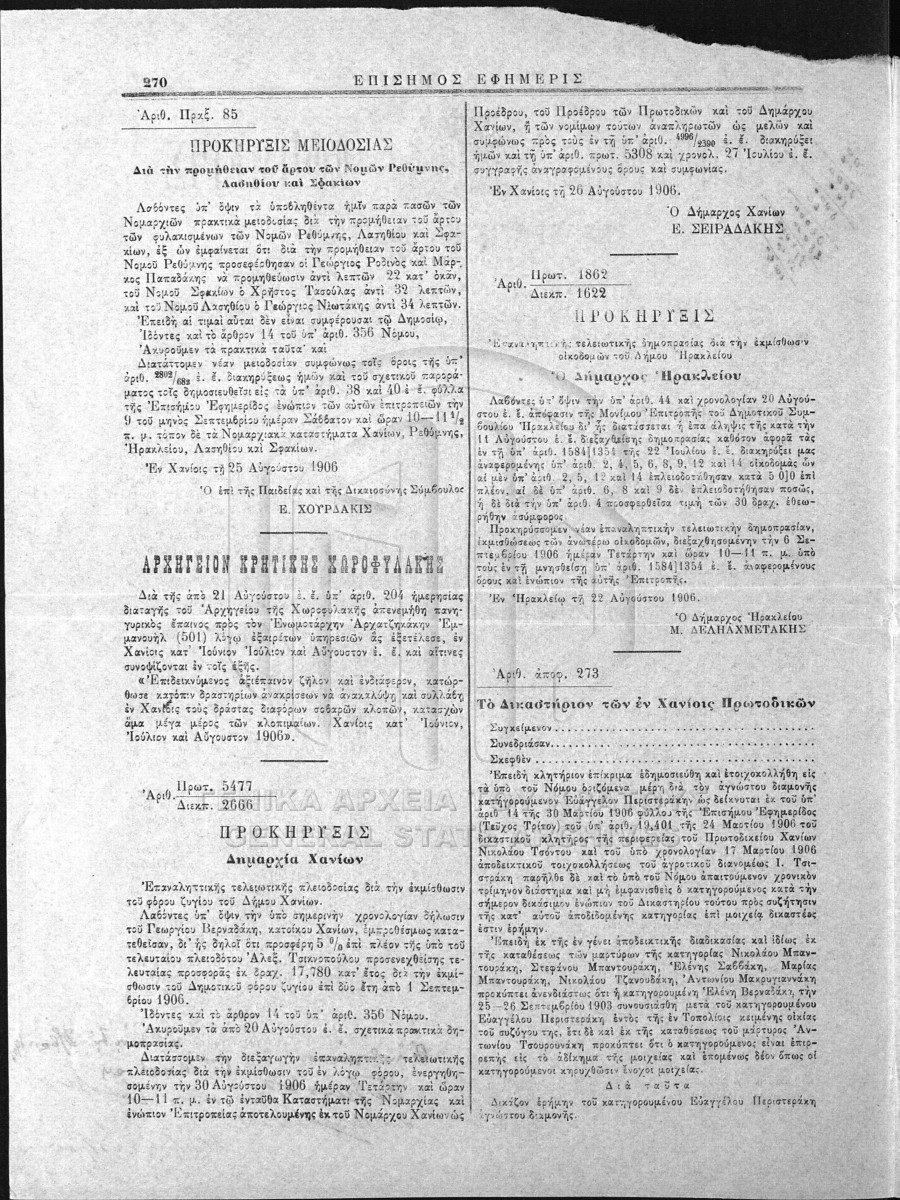 [Fichier] GRGSA-RET_NOT014.01.F000005 Fichier #005 [1906 - 1907] Contenu: Συμβολαιογραφική πράξη. Συμβολαιογραφική πράξη. Εξάλειψη υποθήκης. Συμβολαιογραφική πράξη. Δάνειο καλλιέργειας. Συμβολαι... |
