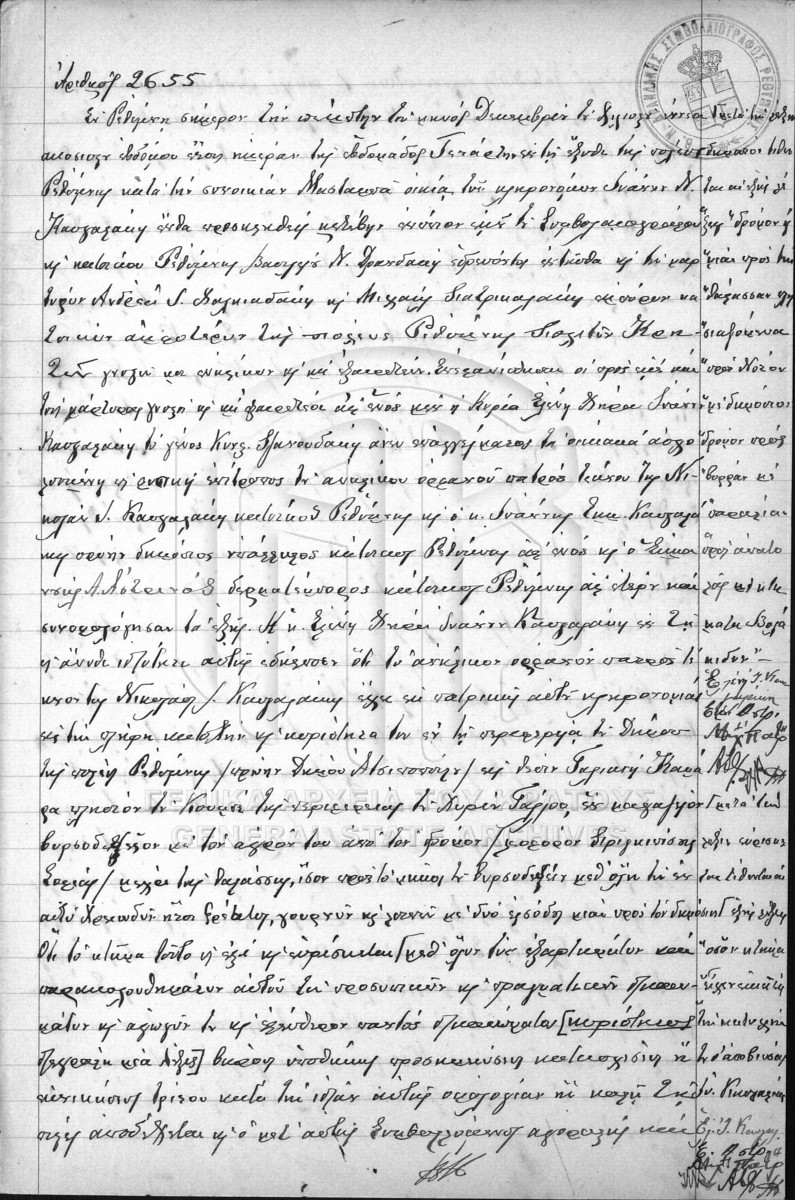 [Τεκμήριο] GRGSA-RET_NOT014.01.F000007.IT002655 Τεκμήριο #2655 [5 Δεκεμβρίου 1907] Συμβολαιογραφική πράξη. |