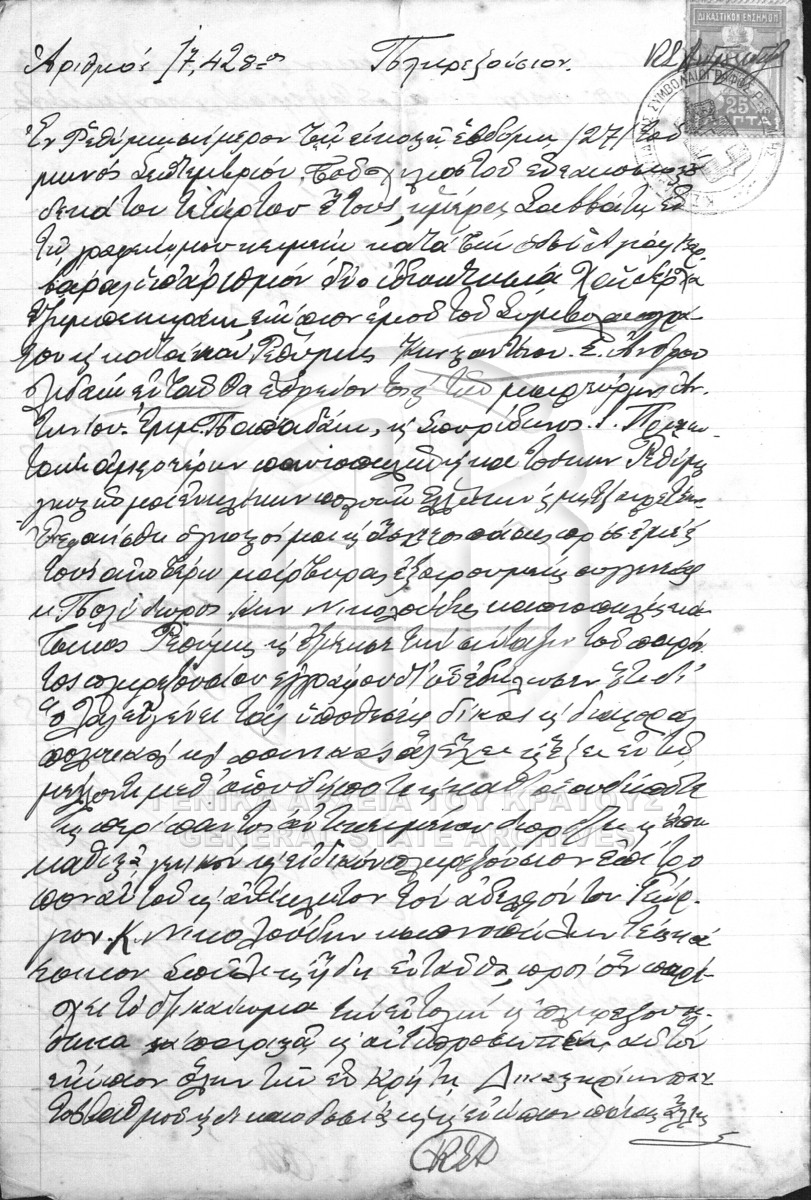 [Pièce] GRGSA-RET_NOT014.01.F000021.IT010597 Pièce #10597 [17 Αυγούστου 1918] Συμβολαιογραφική πράξη. Ανάκληση εντολής. |