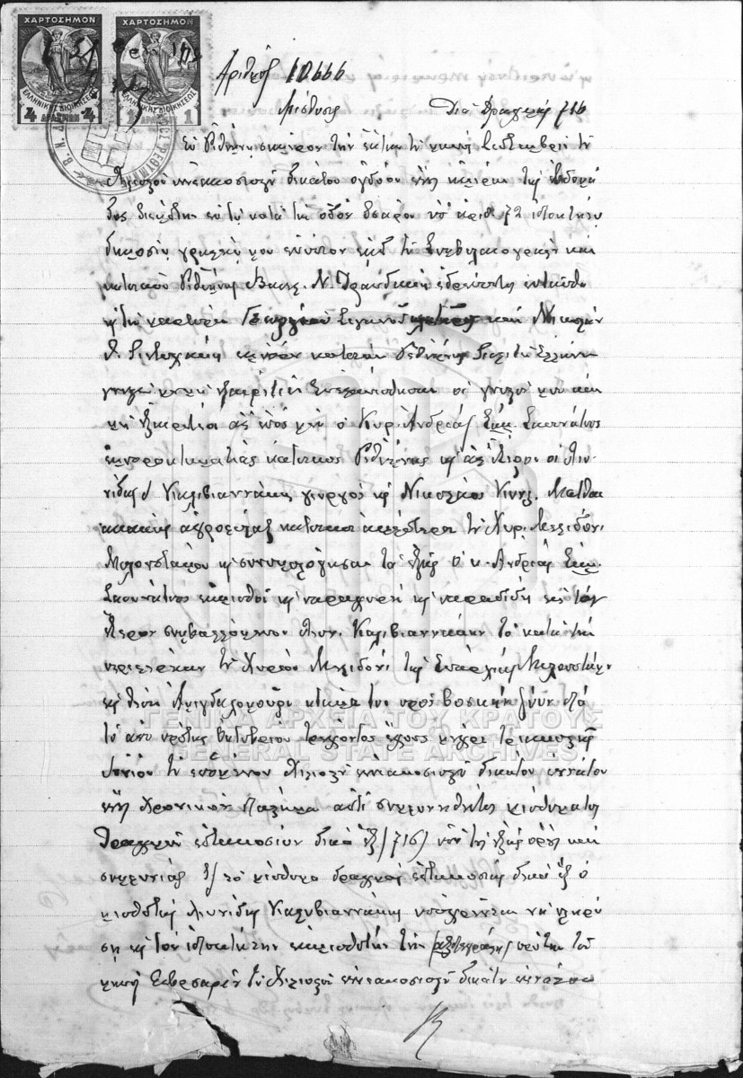 [Pièce] GRGSA-RET_NOT014.01.F000021.IT010666 Pièce #10666 [6 Σεπτεμβρίου 1918] Συμβολαιογραφική πράξη. Μίσθωση. |