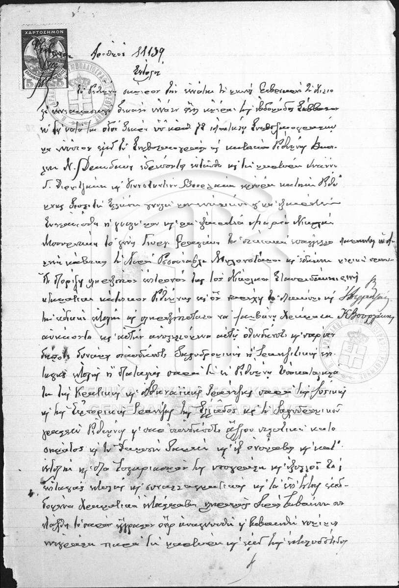 [Pièce] GRGSA-RET_NOT014.01.F000021.IT011139 Pièce #11139 [9 Φεβρουαρίου 1919] Συμβολαιογραφική πράξη. Εντολή. |