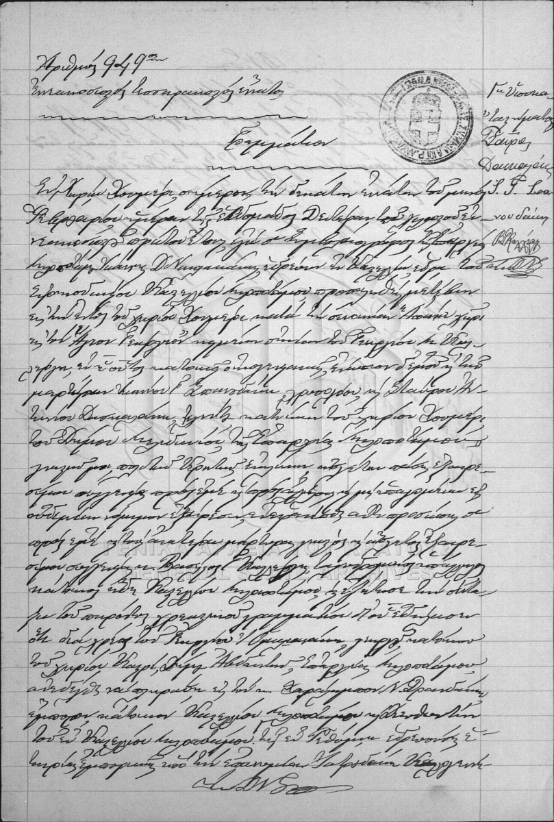 [Pièce] GRGSA-RET_NOT028.01.F000016.IT000949 Pièce #949 [19 Φεβρουαρίου 1901] Συμβολαιογραφική πράξη. Γραμμάτιο. |