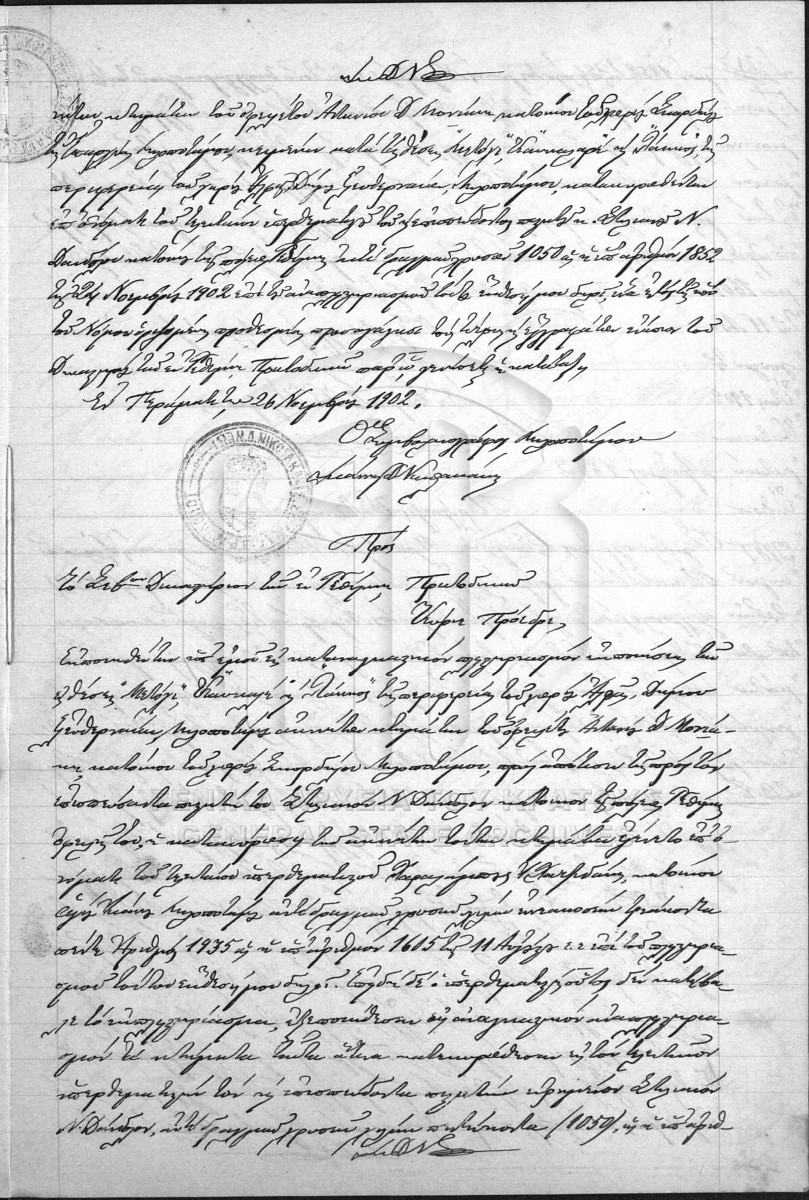[Pièce] GRGSA-RET_NOT028.01.F000018.IT001852 Pièce #1852 [24 Νοεμβρίου 1902] Συμβολαιογραφική πράξη. Κατακυρωτική έκθεση αναγκαστικού αναπλειστηριασμού εκποιήσεως ακινήτων. |