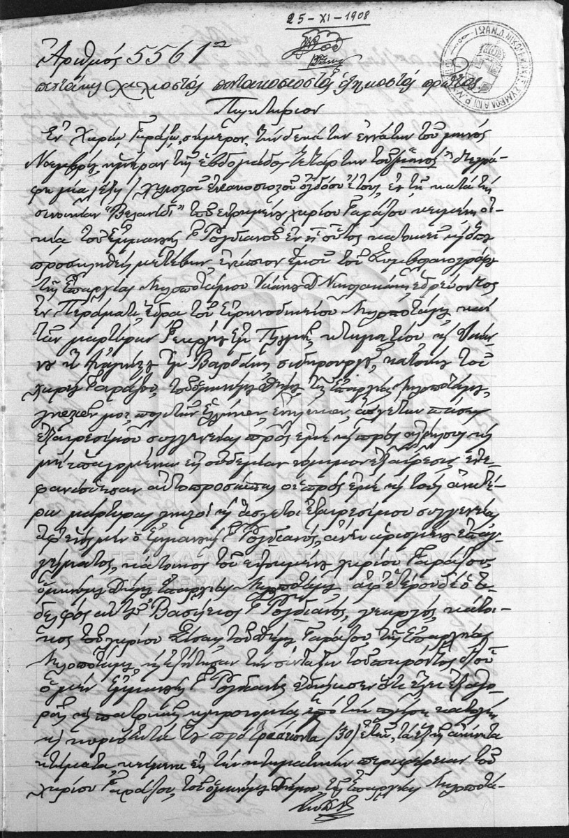 [Item] GRGSA-RET_NOT028.01.F000029.IT005561 Item #5561 [19 Νοεμβρίου 1908] Notarial deed. Sale agreement. |